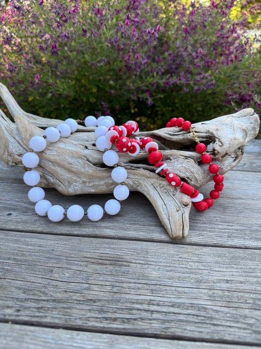 Playful Vintage Coordinated Beaded Necklace Set in Red & White