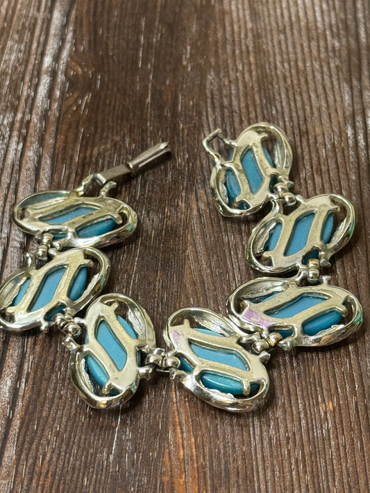 1960s Lisner Aqua Ribbed Vintage Bracelet with Silver Accents
