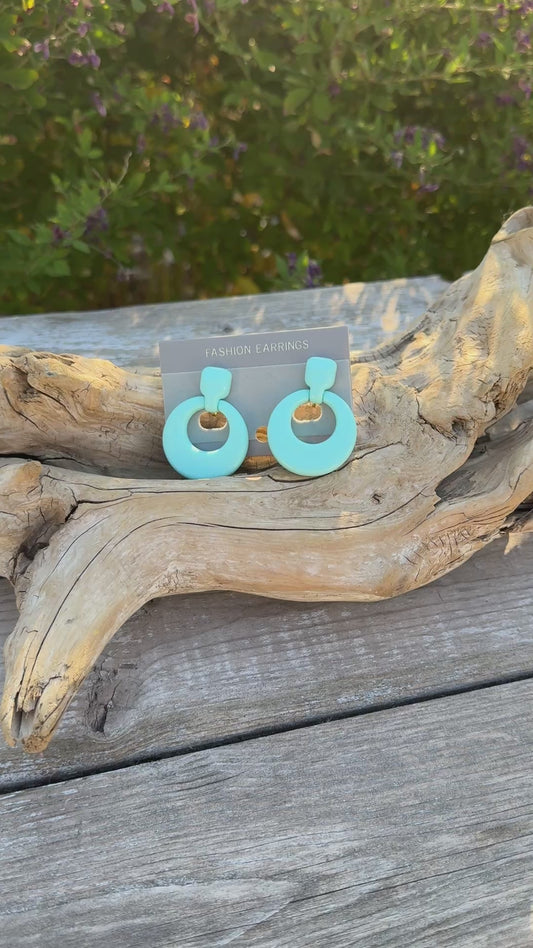 Vintage 80s Turquoise Lucite Hoop Earrings