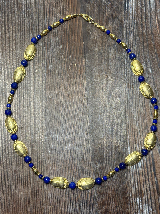 Vintage Egyptian Revival Scarab Necklace - Blue Statement Piece
