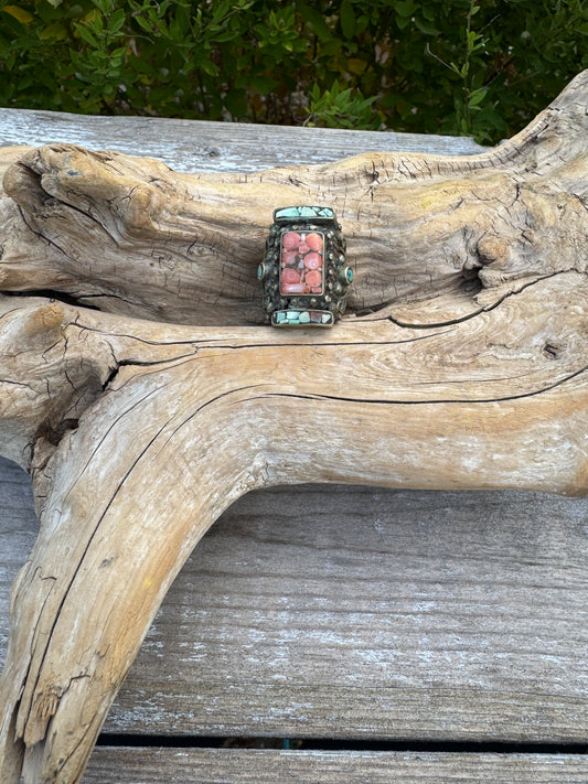 1960s Lisner Aqua Ribbed Vintage Bracelet with Silver Accents