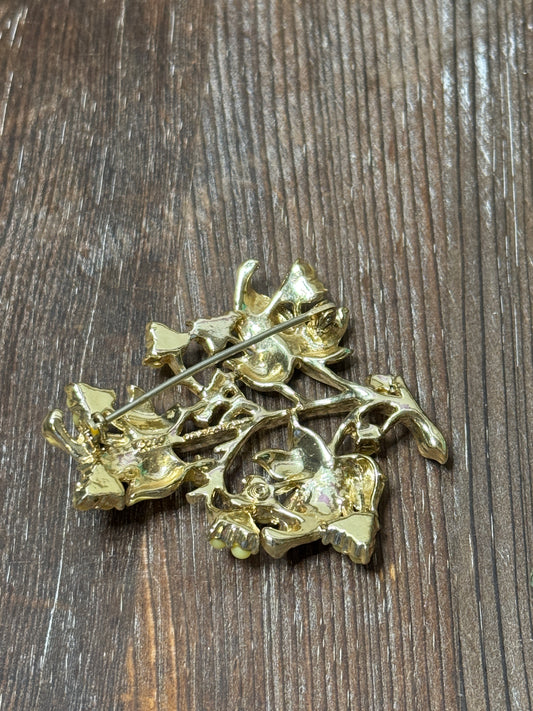 Vintage Lucite Floral Brooch with Multicolor Rhinestones