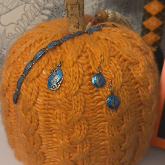 - Includes bracelet, dangle earrings & pendant