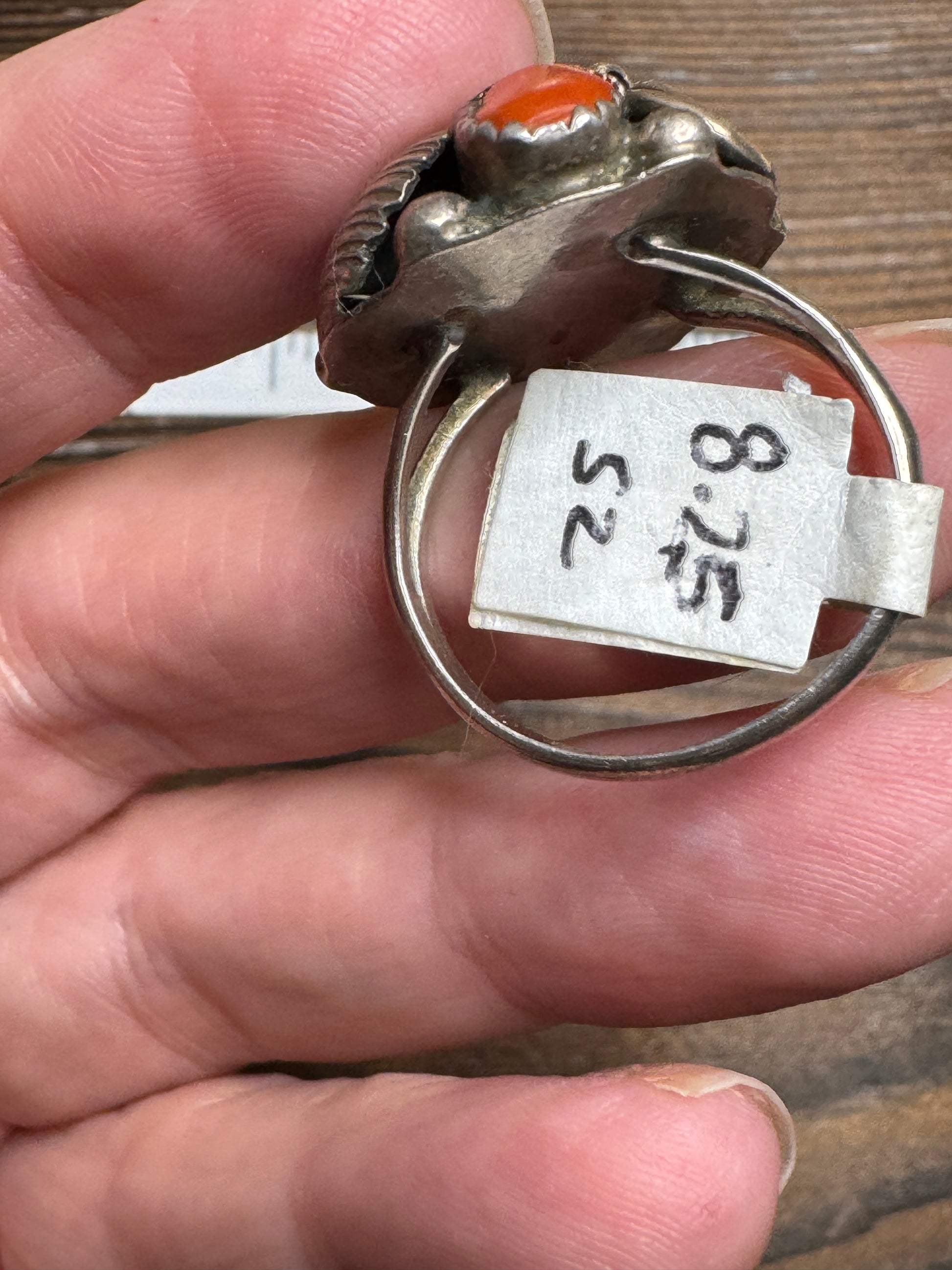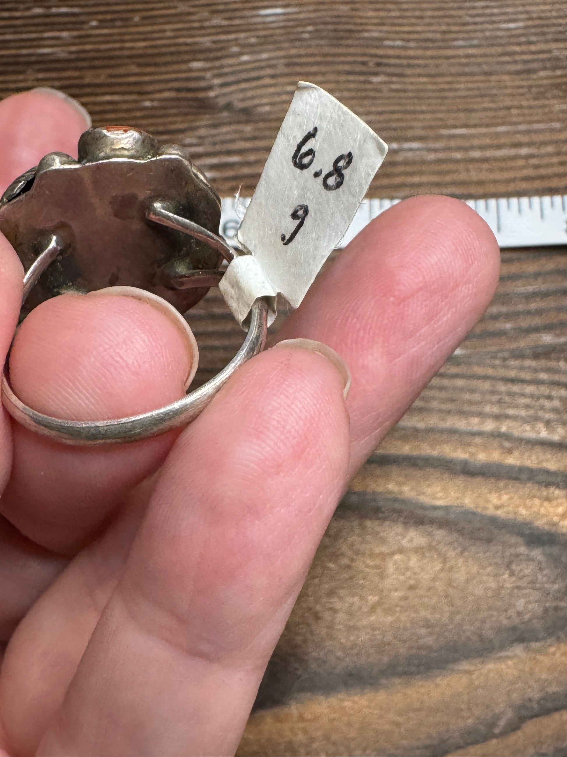 Vintage Native American Turquoise Coral Sterling Ring Cluster Size 8.5