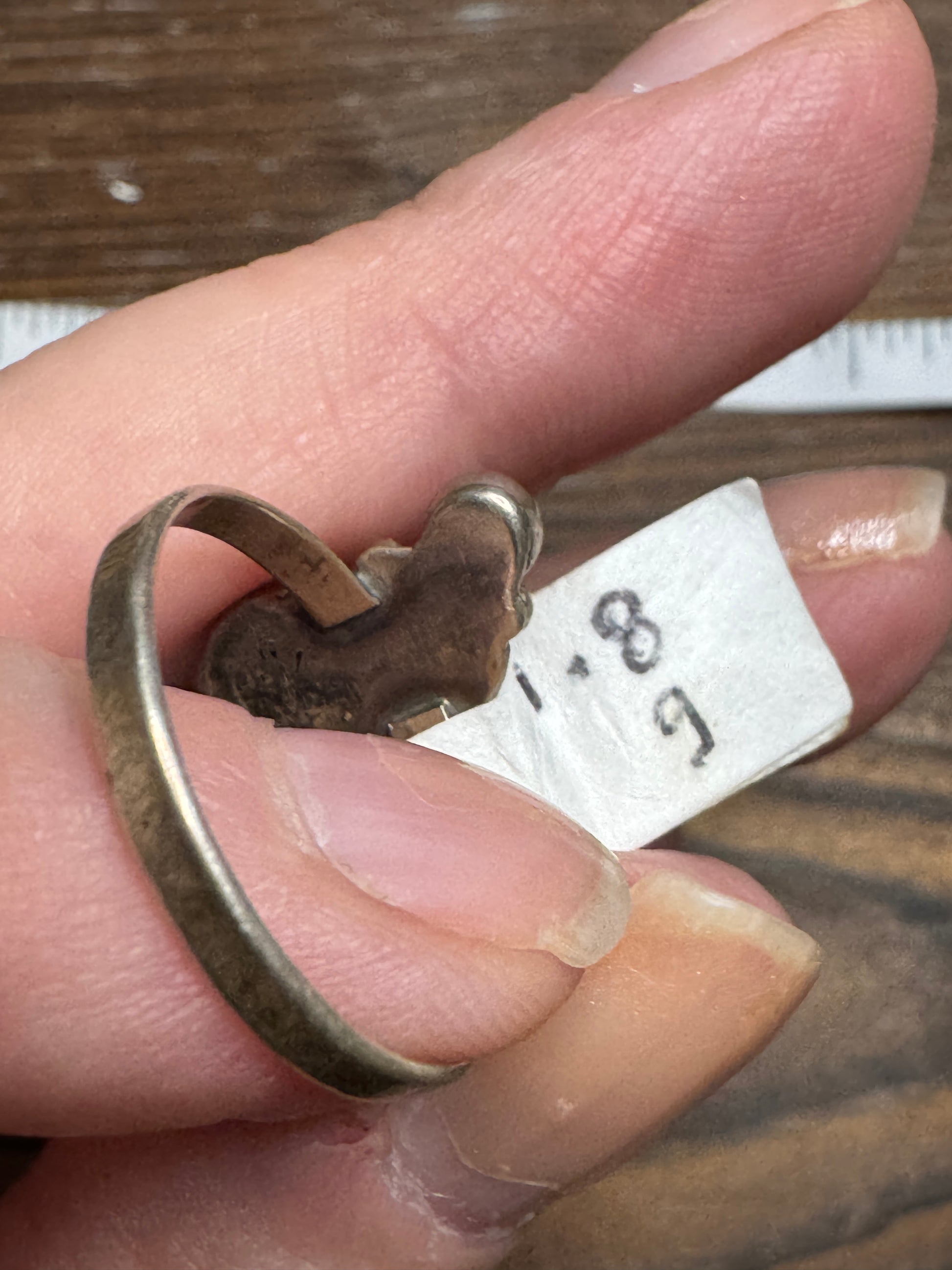 Learning Note: Feather motifs in Native American jewelry hold profound spiritual meaning, representing honor, strength, wisdom, and connection to the spiritual realm. Combined with turquoise (symbolizing sky/water/protection) and coral (representing earth/life/vitality), rings like this carried deep significance. The hand-stamped feather detail shows skilled silversmithing craftsmanship. These delicate pieces became popular in the 1970s-80s when Southwestern jewelry gained mainstream appeal. Natural patina on sterling is prized as it shows authenticity and age!