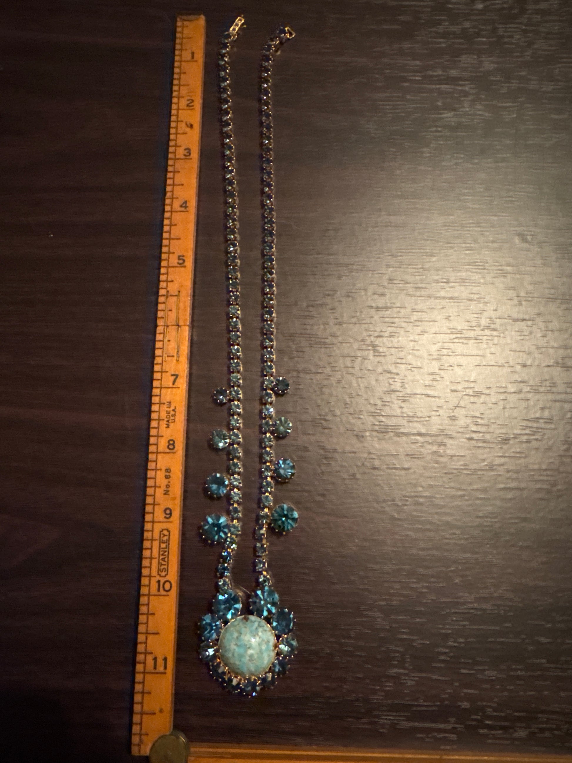 Blue Rhinestone & Turquoise Necklace - Bohemian Goddess Style
