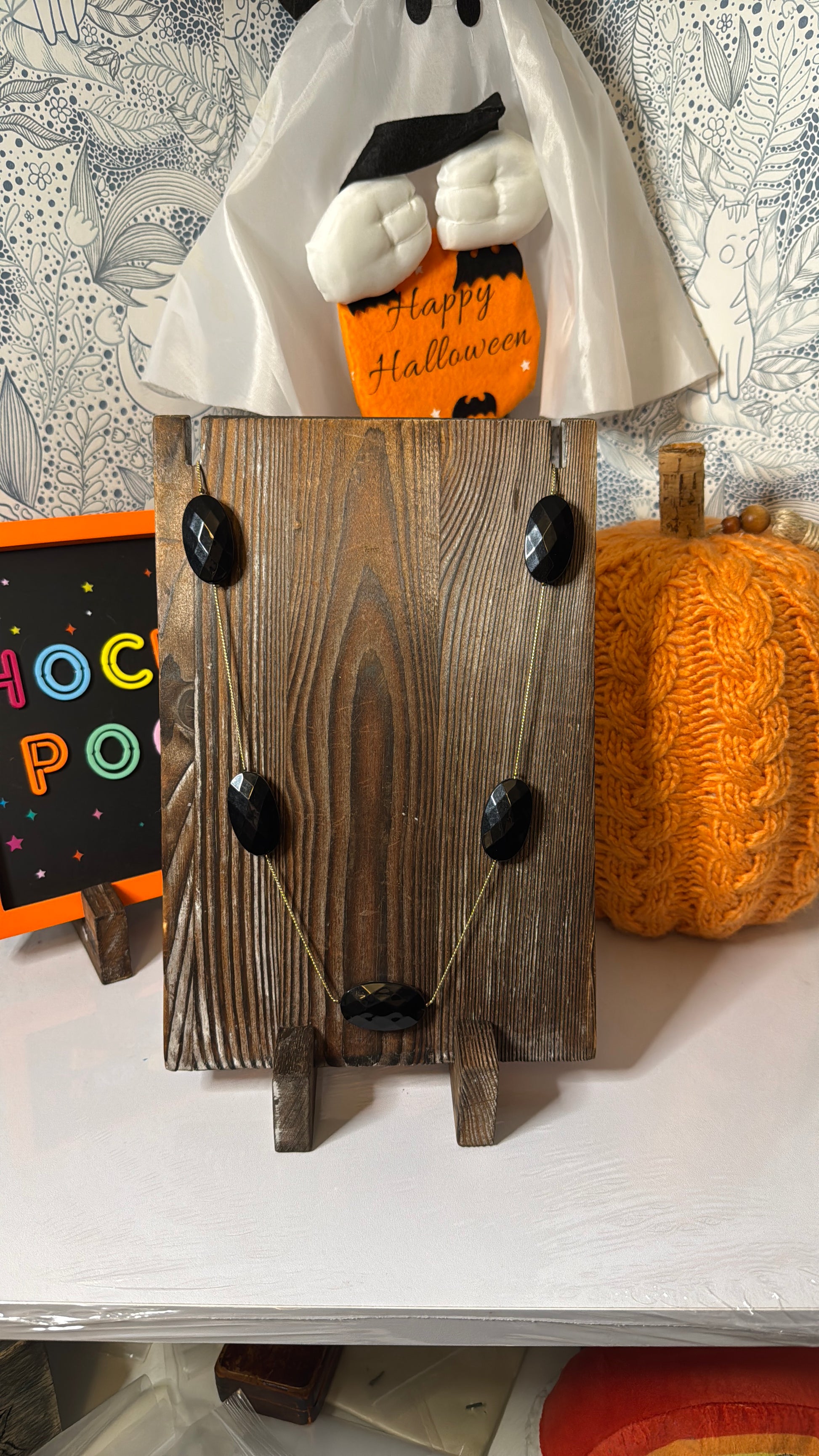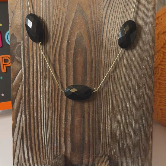 Vintage 1970s Faceted Black Glass Bead Necklace