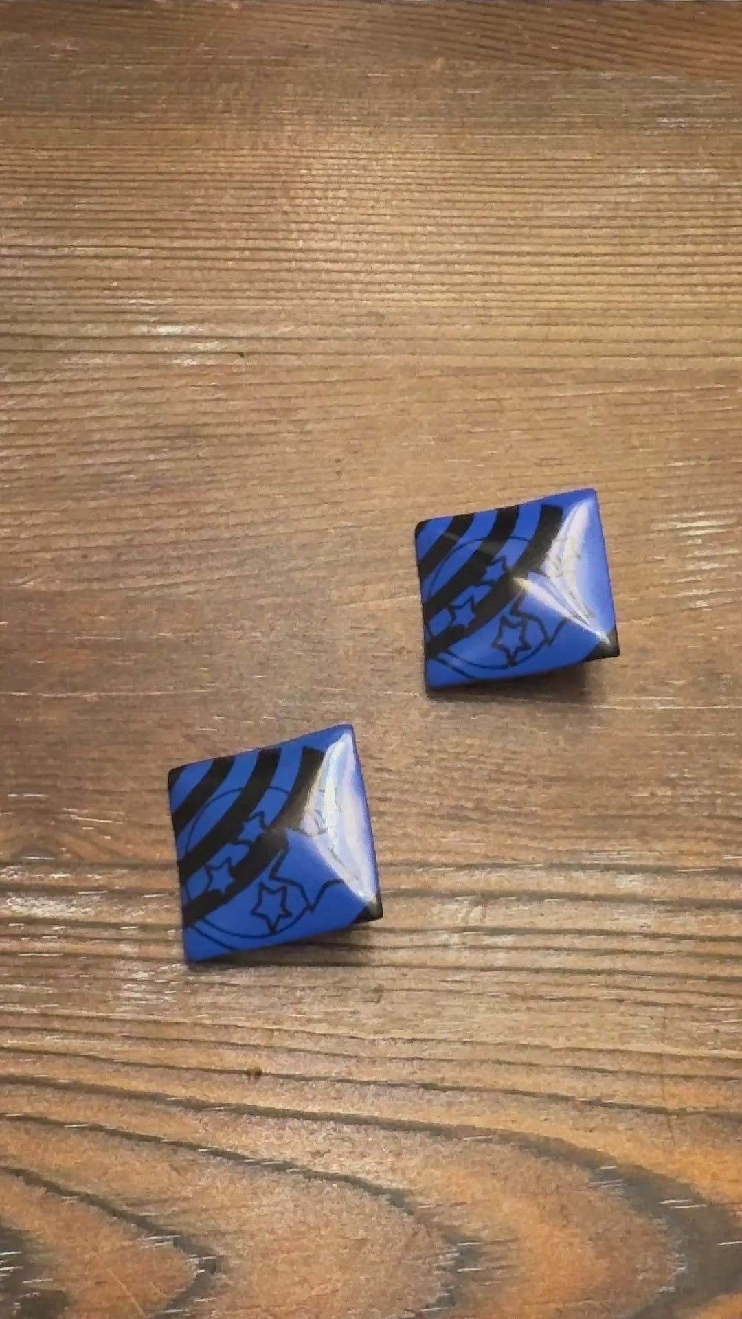 These bold vintage earrings are pure 1980s graphic energy! The electric blue squares with striking black star and stripe designs create such a fun, eye-catching look.