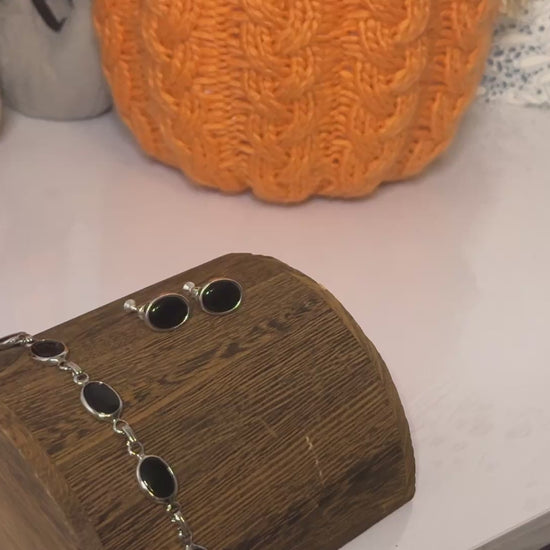 Vintage Black & Silver Bracelet w/ Coordinating Earrings