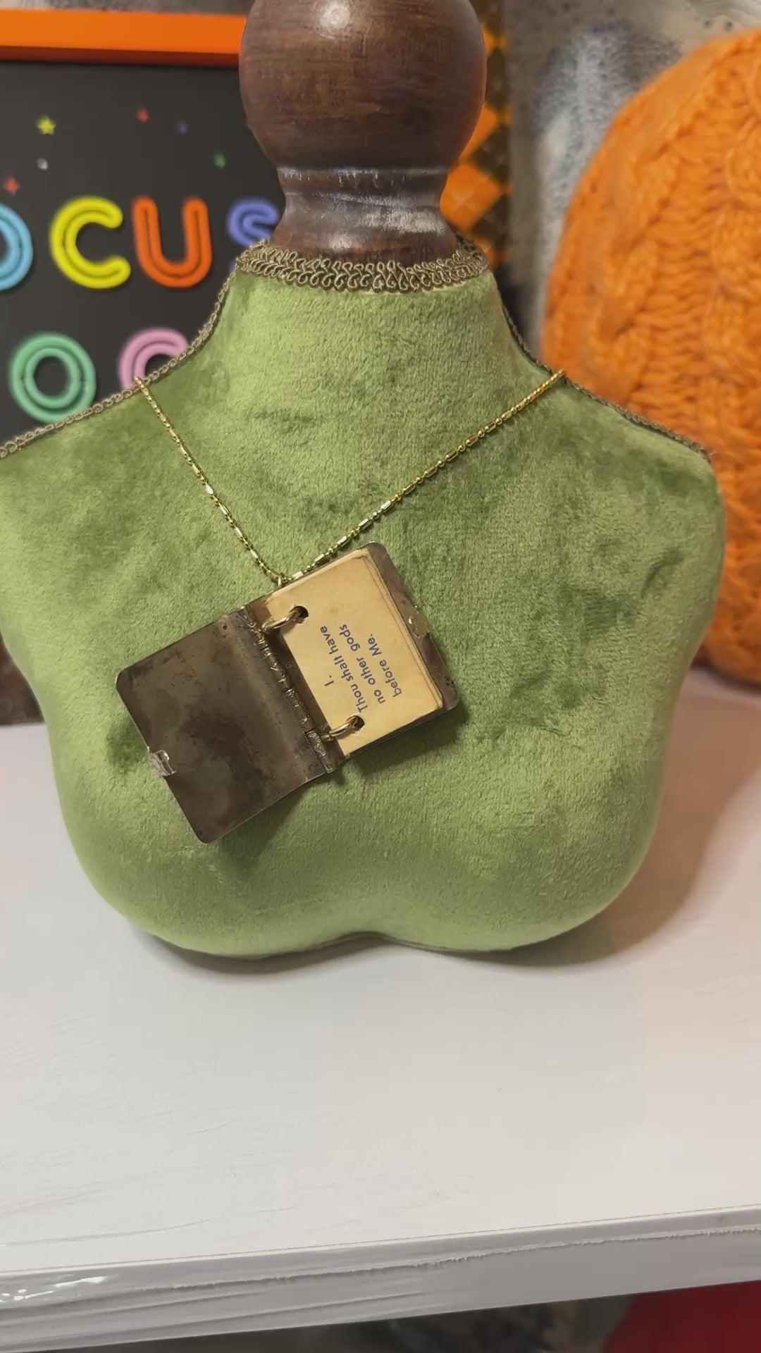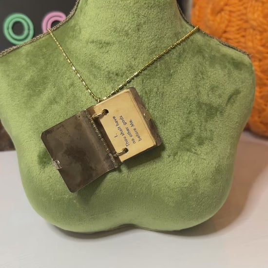 Hold faith close to your heart with this stunning vintage Ten Commandments book locket from the 1960s! This isn't just jewelry – it's a miniature working book you can wear.