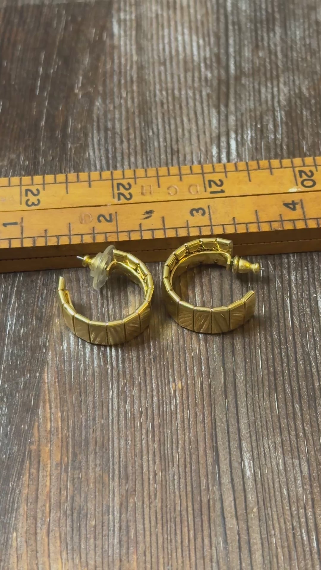 Segmented or “tank-style” hoops echoed the mechanical precision of luxury watches popular in the late 1970s and 1980s. Costume designers borrowed that design language to make jewelry that looked refined but modern, using lightweight alloys and layered gold finishes.