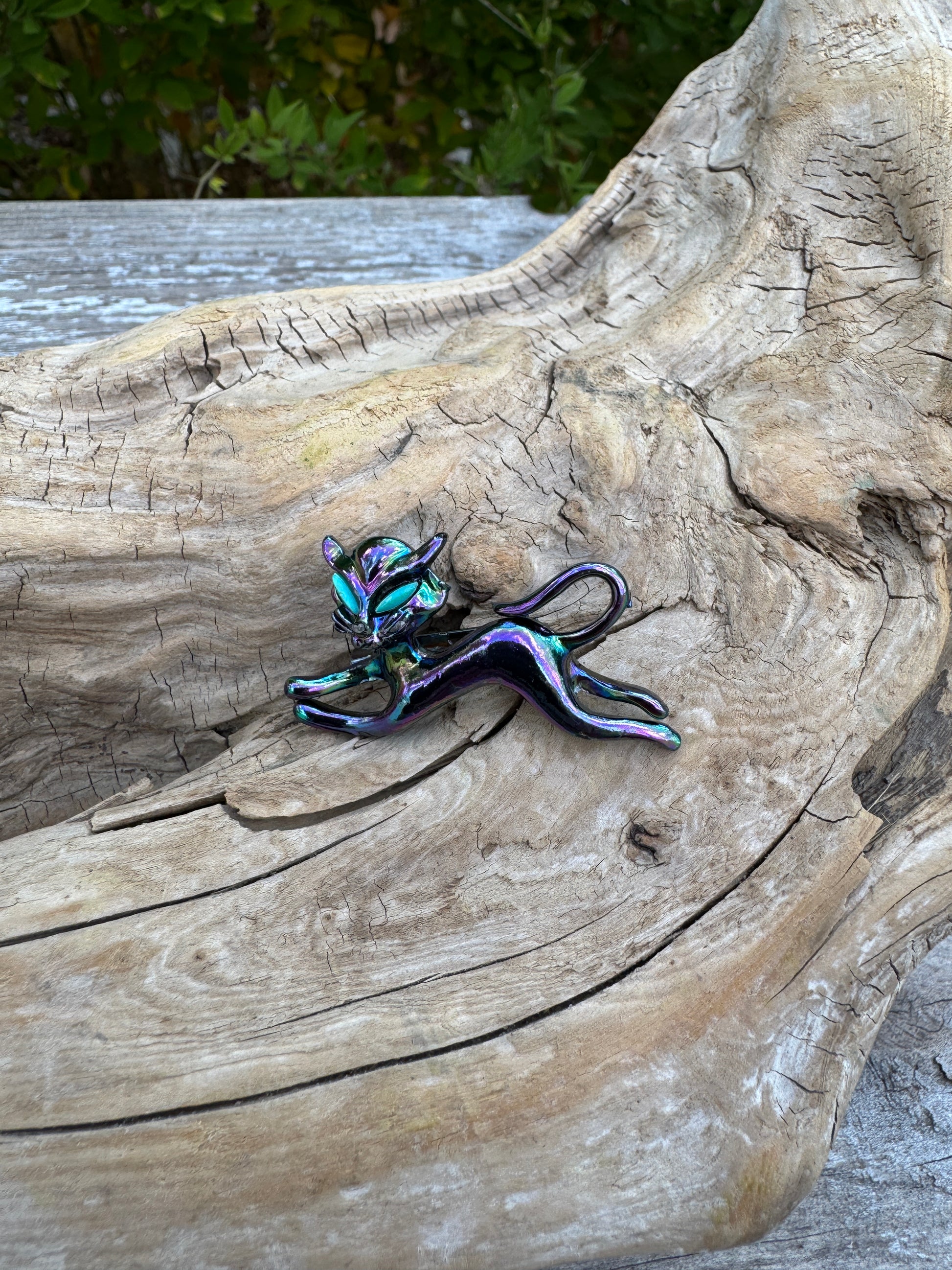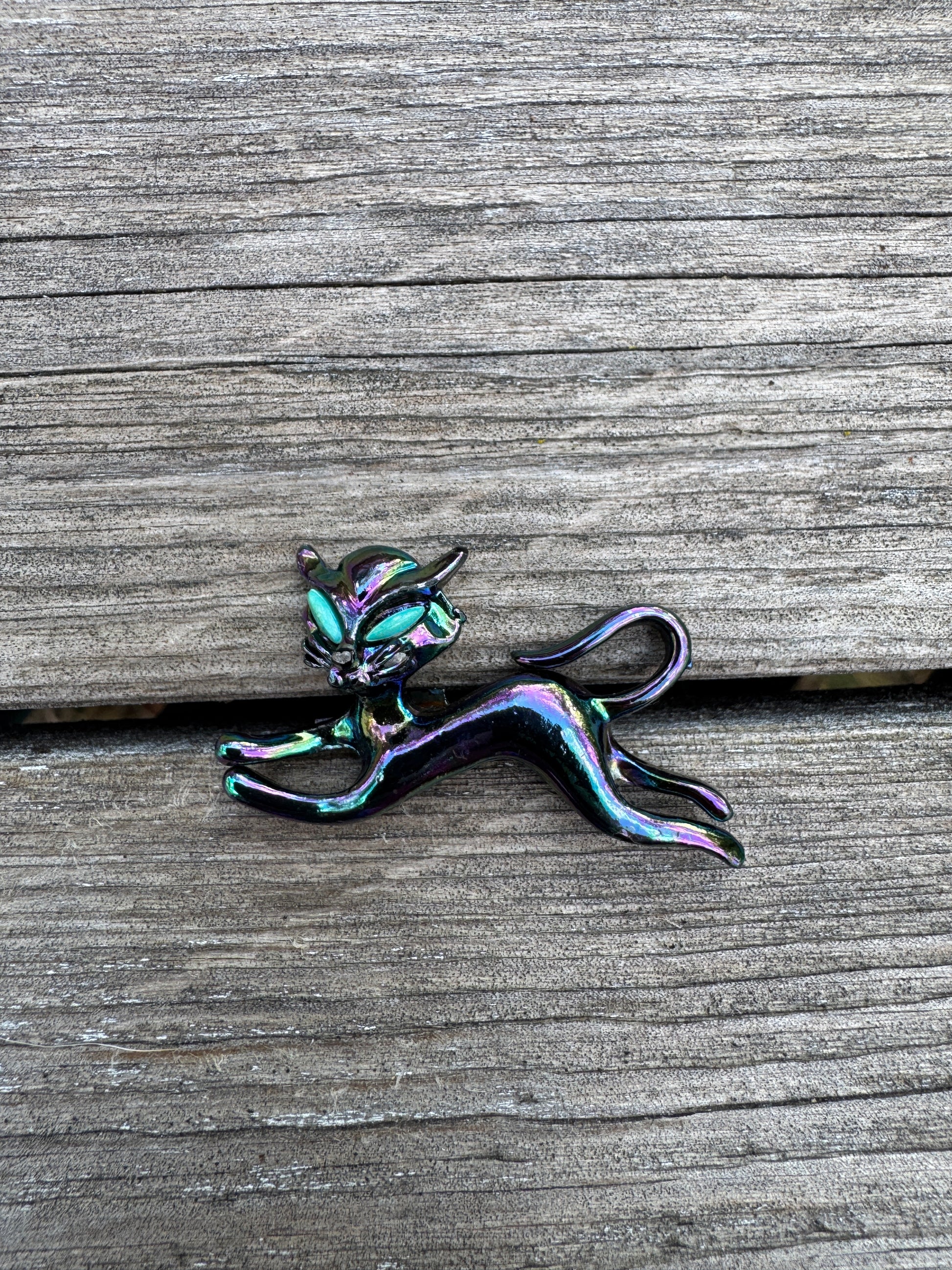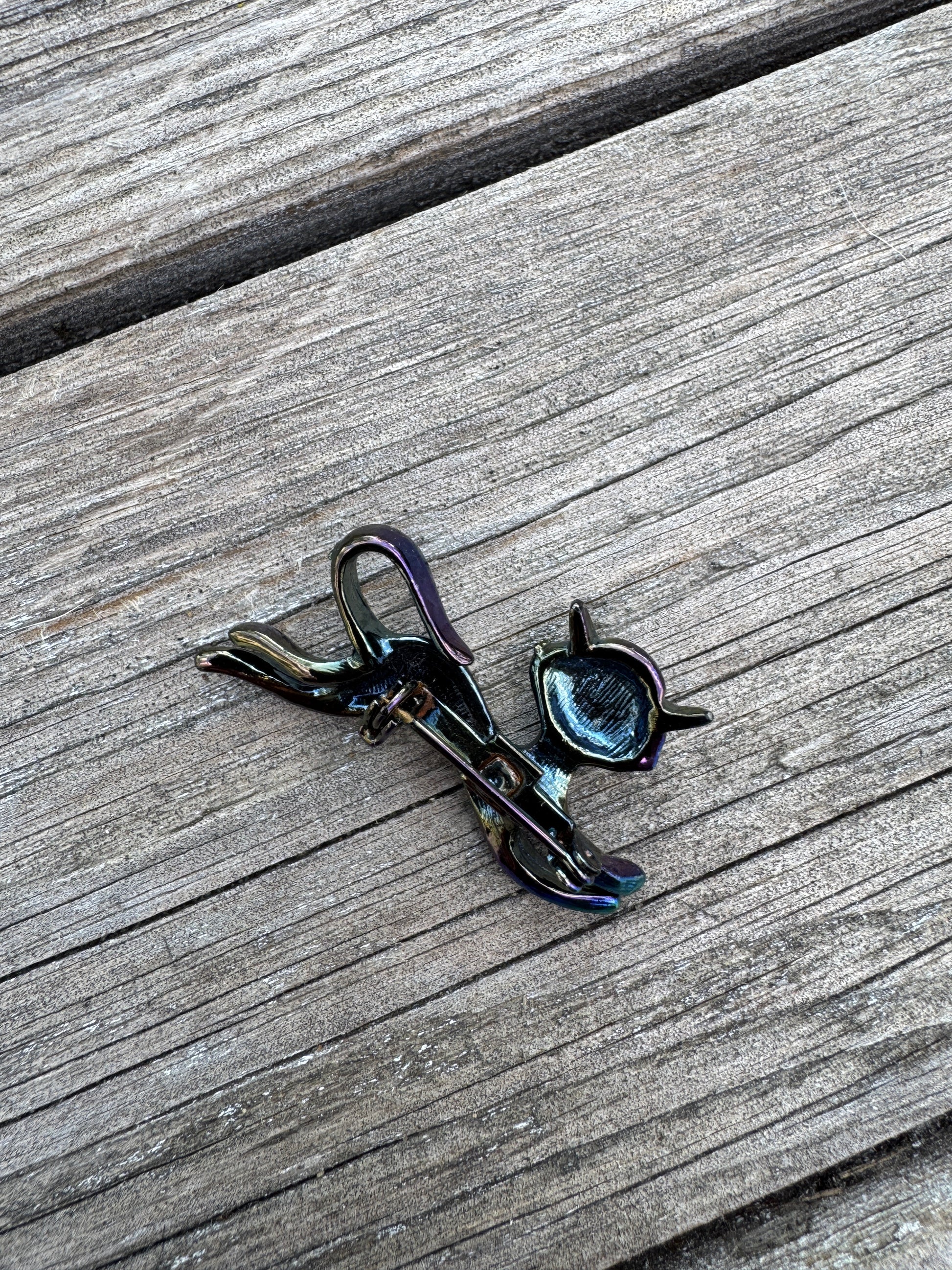 Vintage Iridescent Black Cat Pins – Halloween Brooch Set | Witchy Statement Jewelry