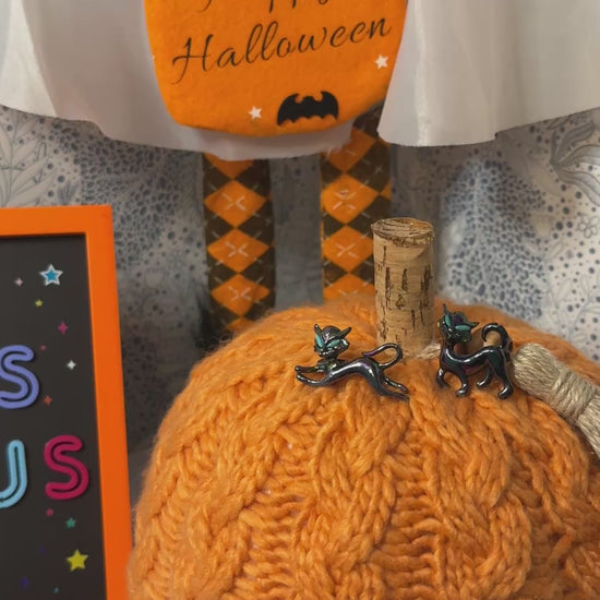 These vintage black cat pins bring the perfect mix of spooky charm and sassy style. Each cat gleams with an iridescent rainbow finish that shifts in the light — one proudly posing, the other mid-pounce. Perfect for Halloween outfits, witchy wardrobes, or anyone who loves a little black cat magic all year long.